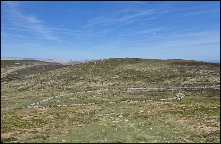 Grimspound’s circular enclosure seen from the nearby hill of Hameldown Tor. Photo by Mike Edwardson.